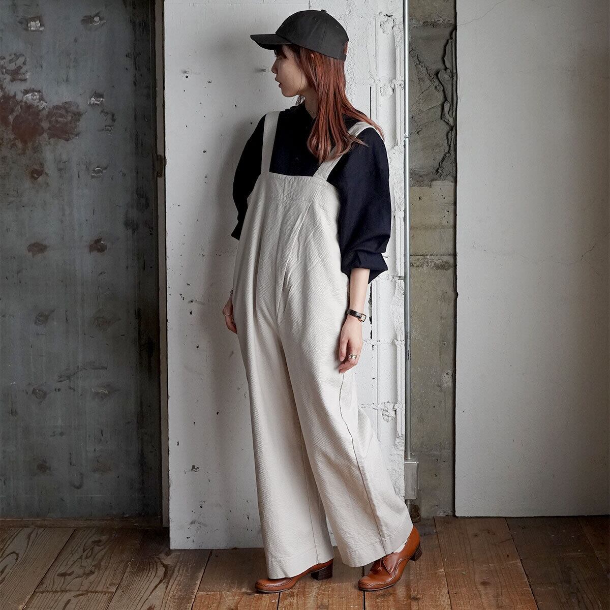 凹凸感があり、表情のある生地のサロペット。