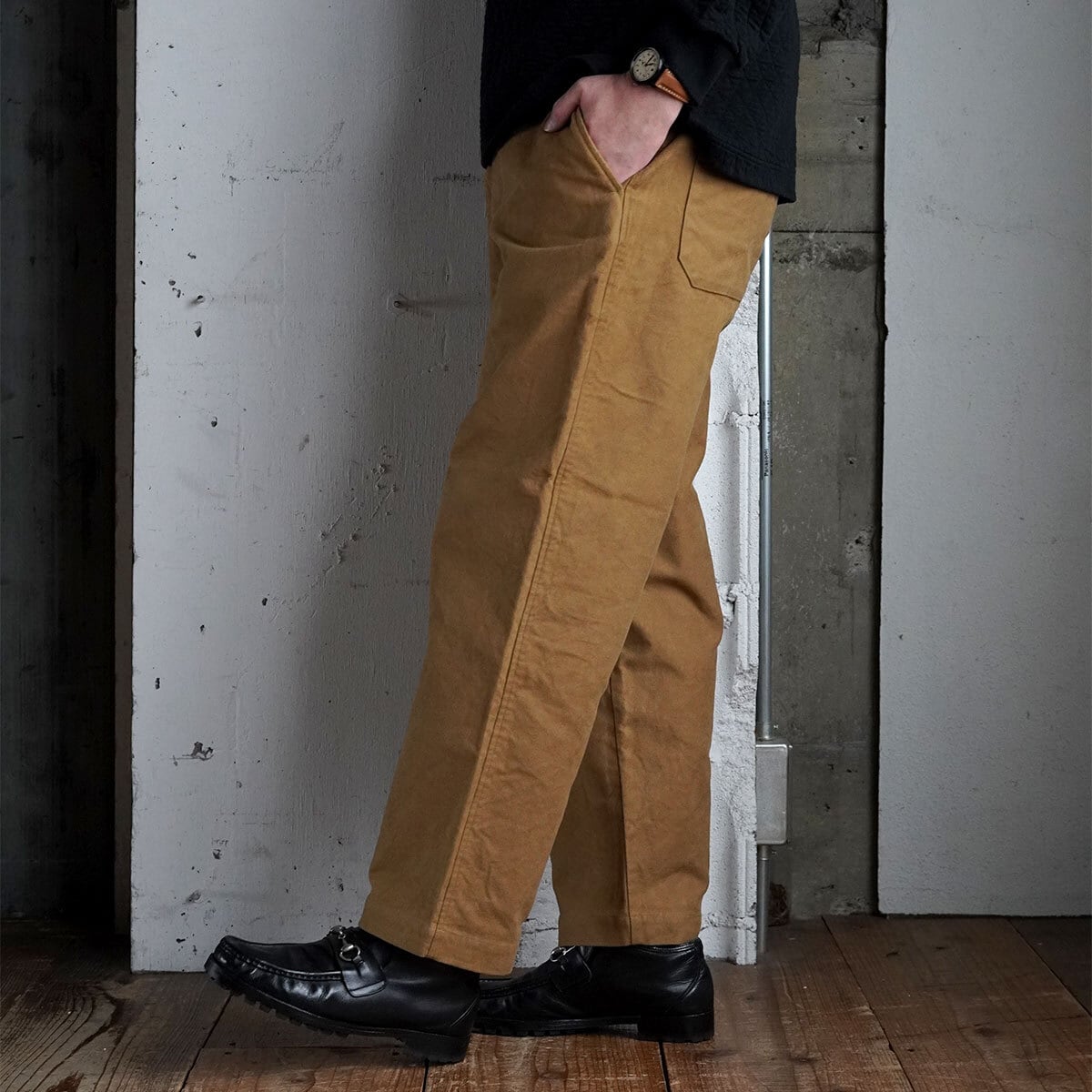 癖のないストレートシルエットながら、ややワイドで存在感のあるパンツ。