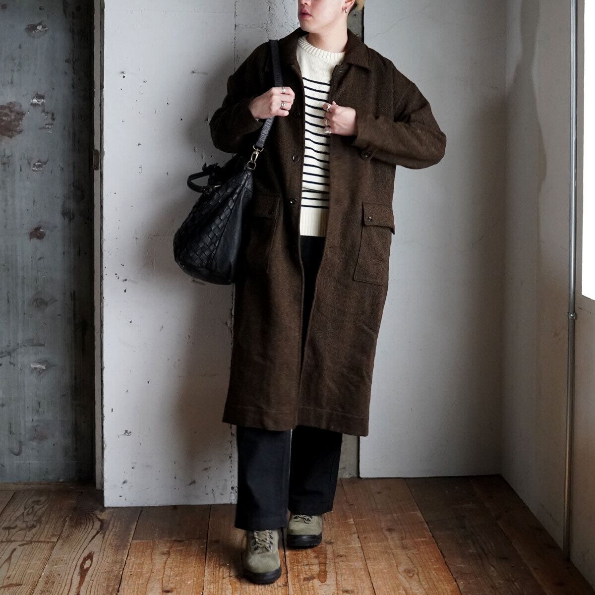 UNIVERSAL TISSU wool herringbone stand collar coat