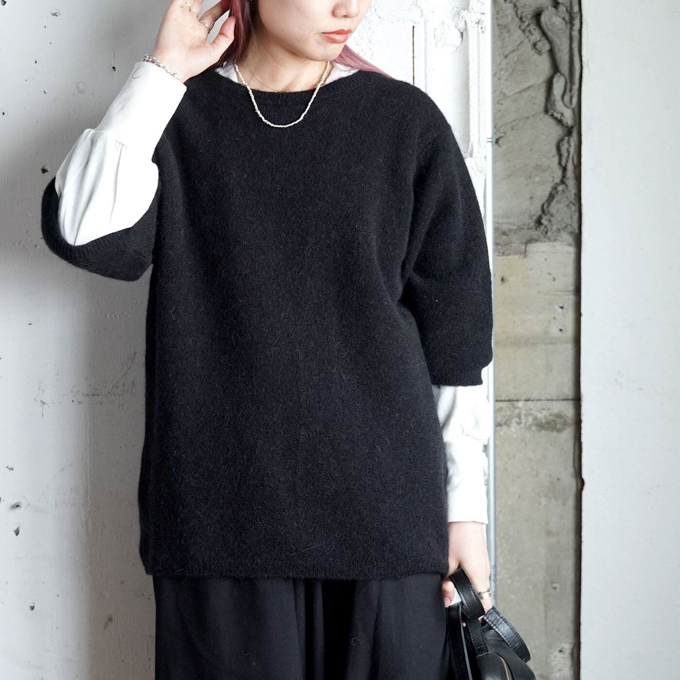 sibinlinnebjerg alpaca elbow length sweater black -MASSA-