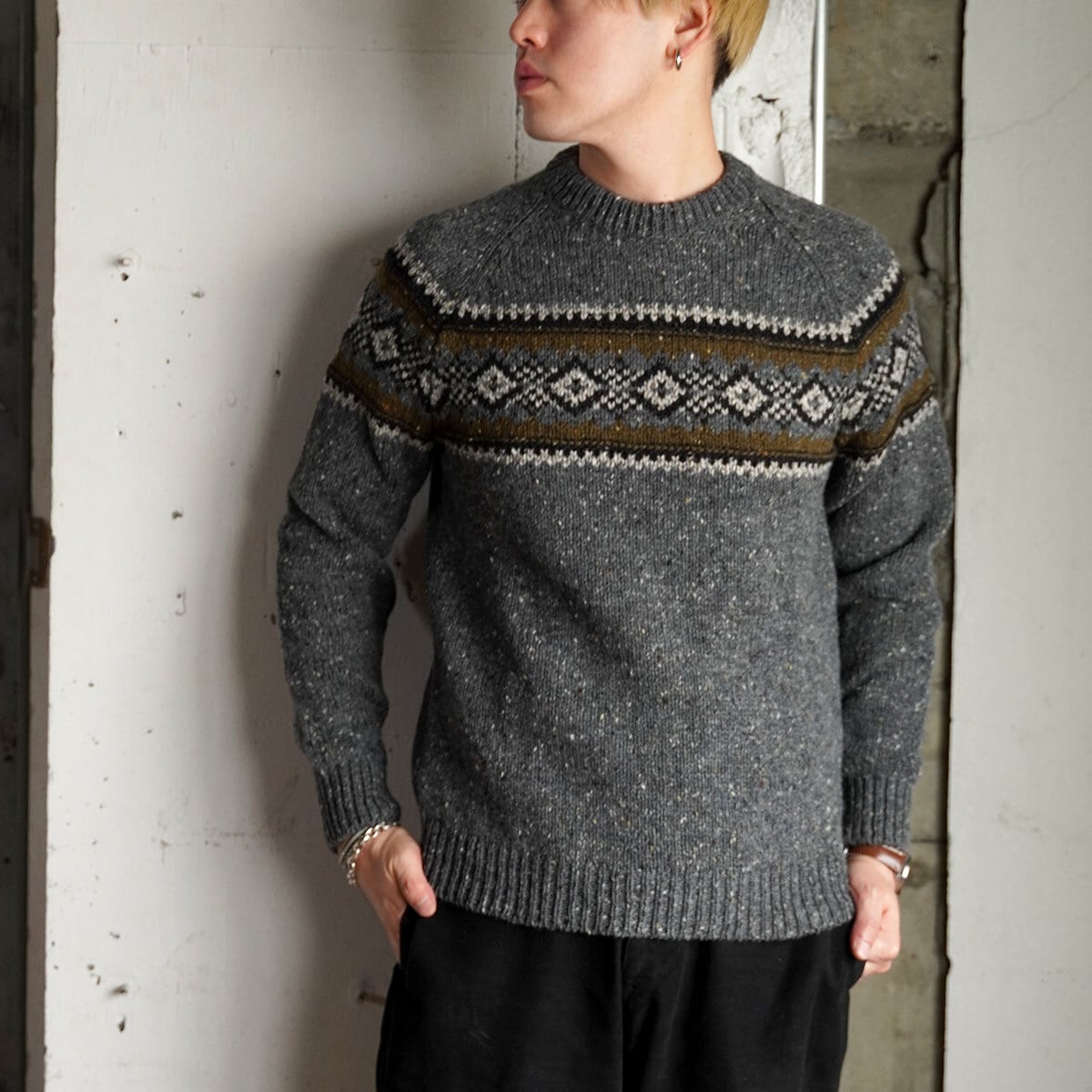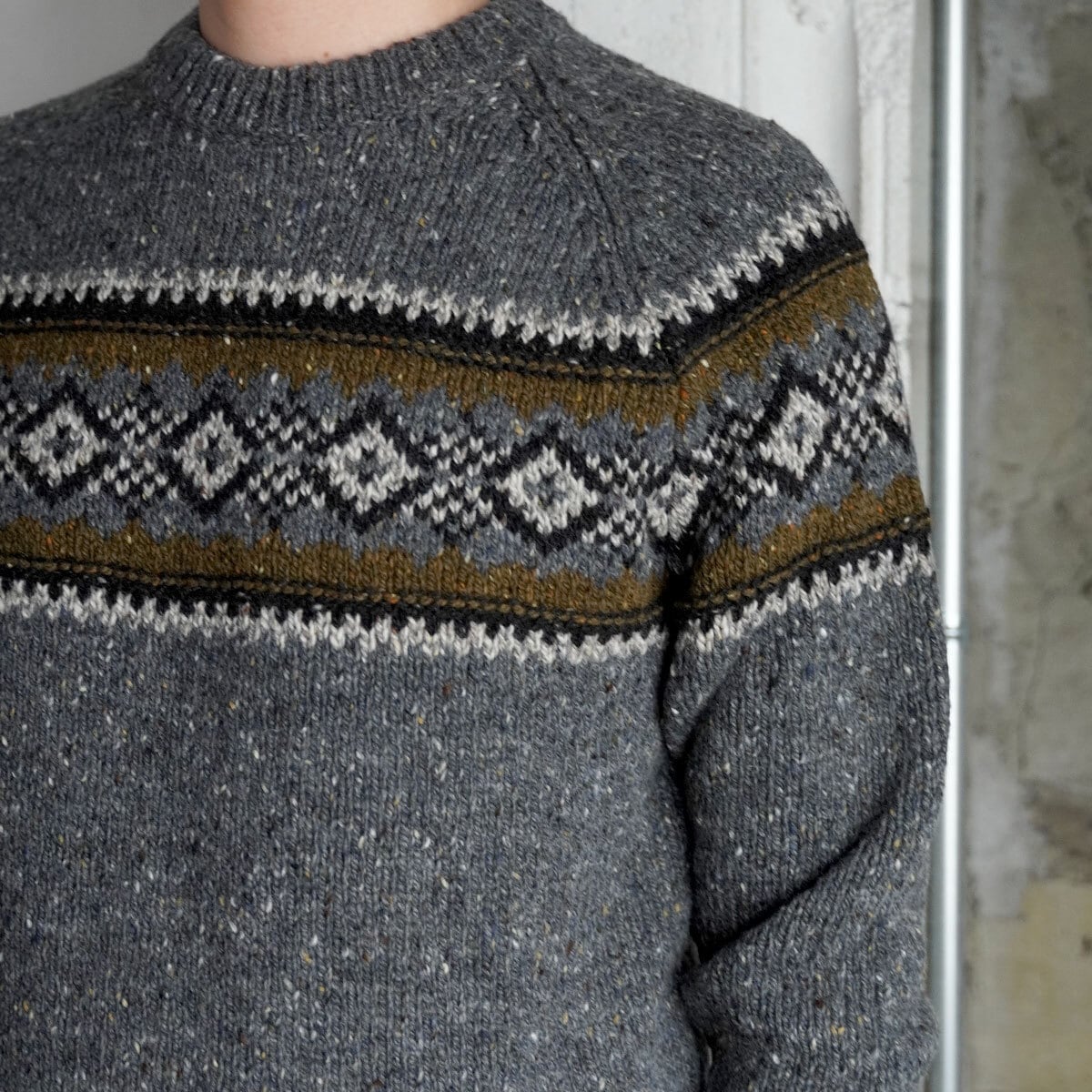 Fisherman out of Ireland patterned knit sweater -bluegray-