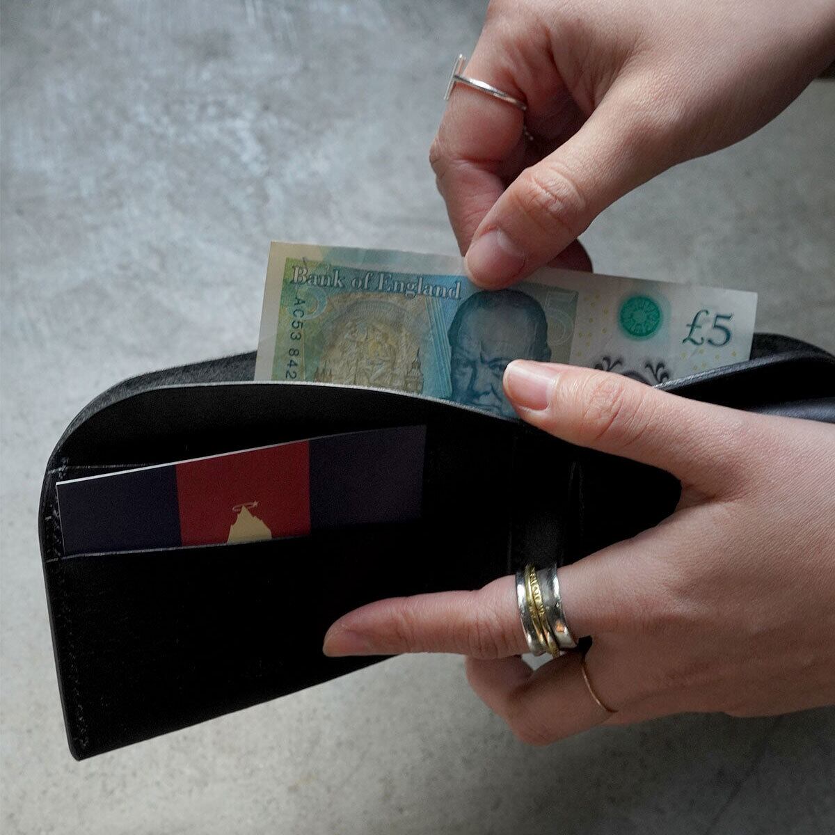 片手に程よく収まるコンパクトサイズの二つ折り財布。