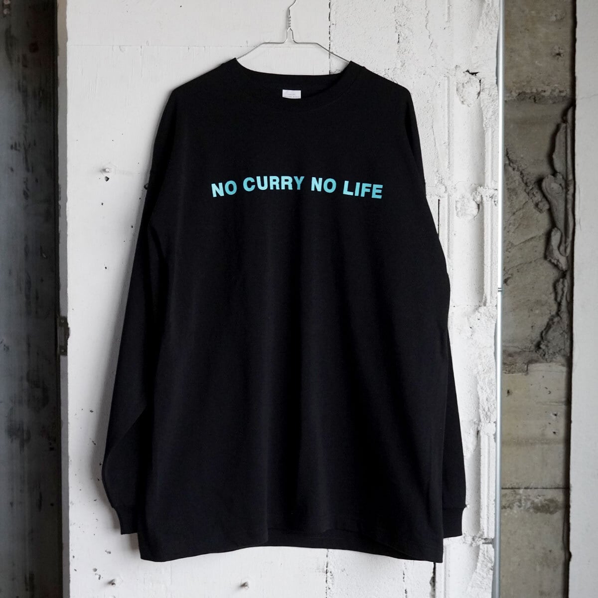NO CURRY NO LIFE 9.1oz big silhouette Llong-sleeve T-shirt -black×sky blue-
