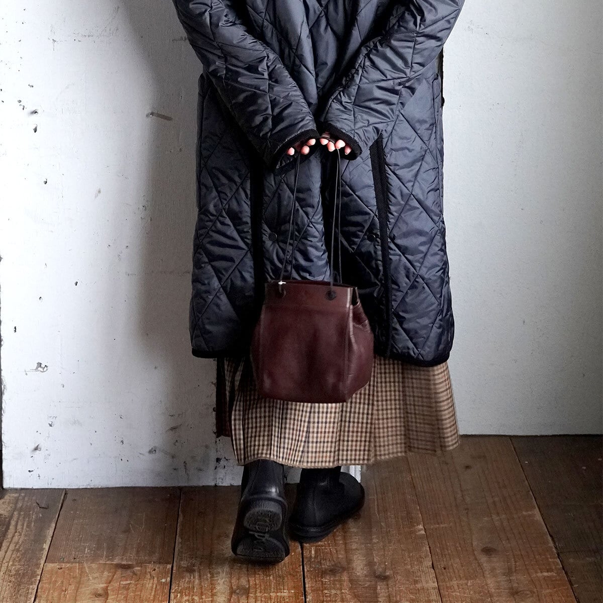 レザーの質感、フォルムから柔らかな雰囲気に。