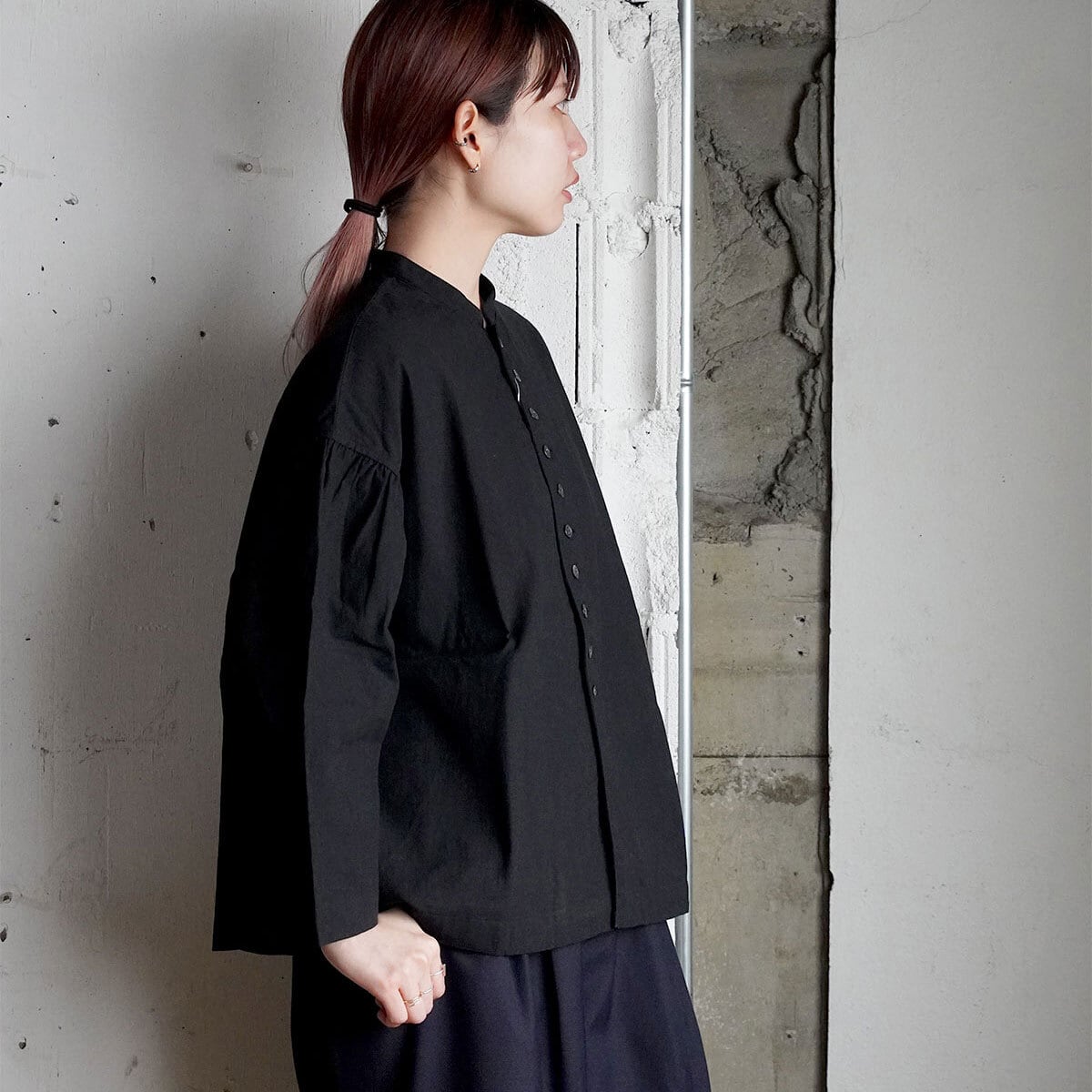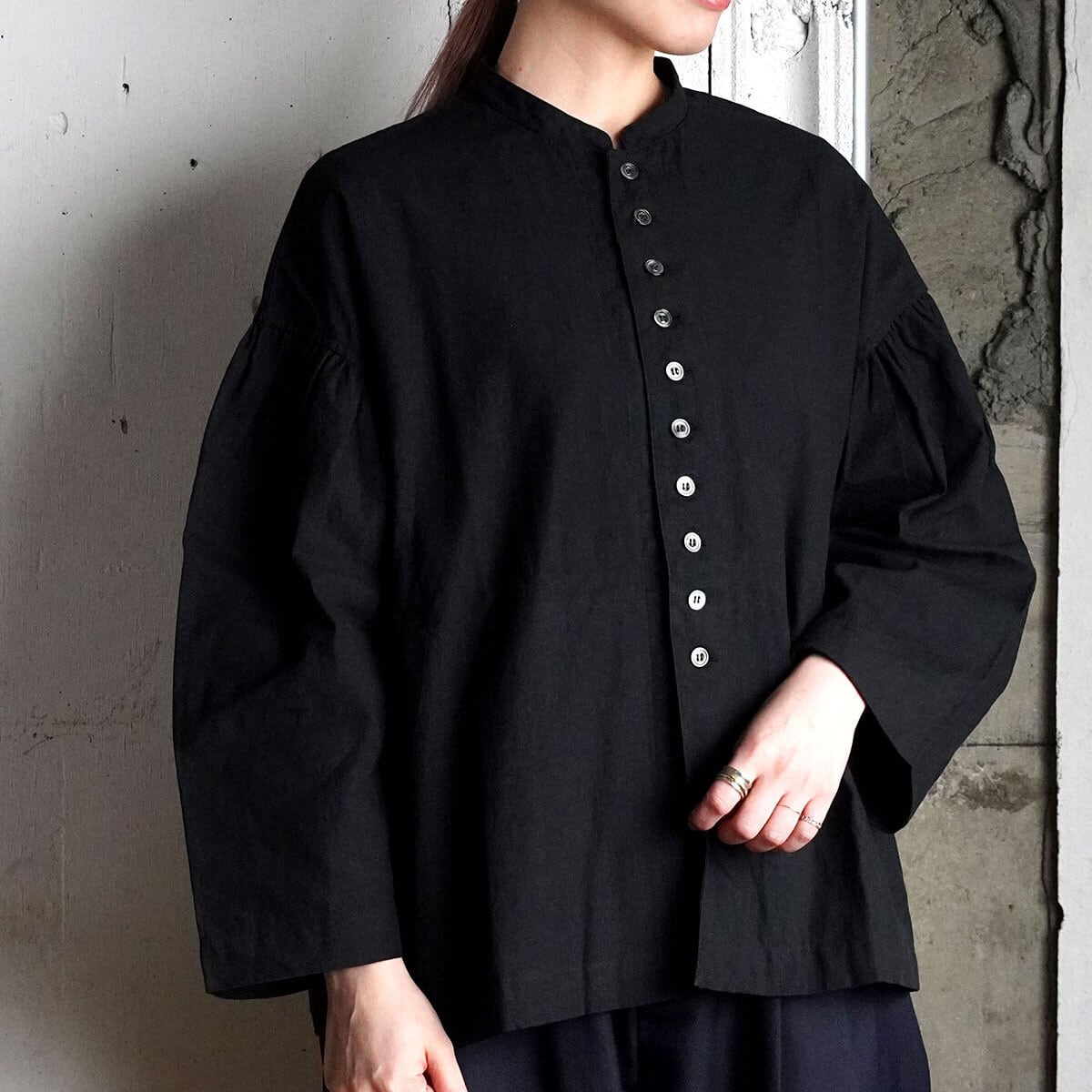袖山のたっぷりのギャザーがひっそりと甘さをプラス。