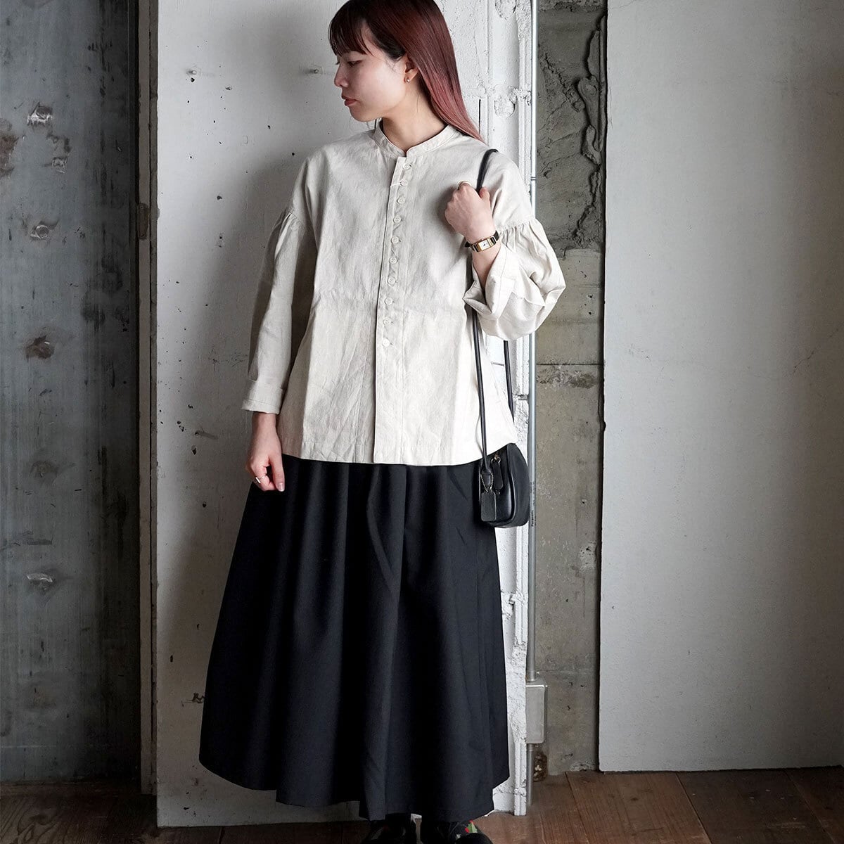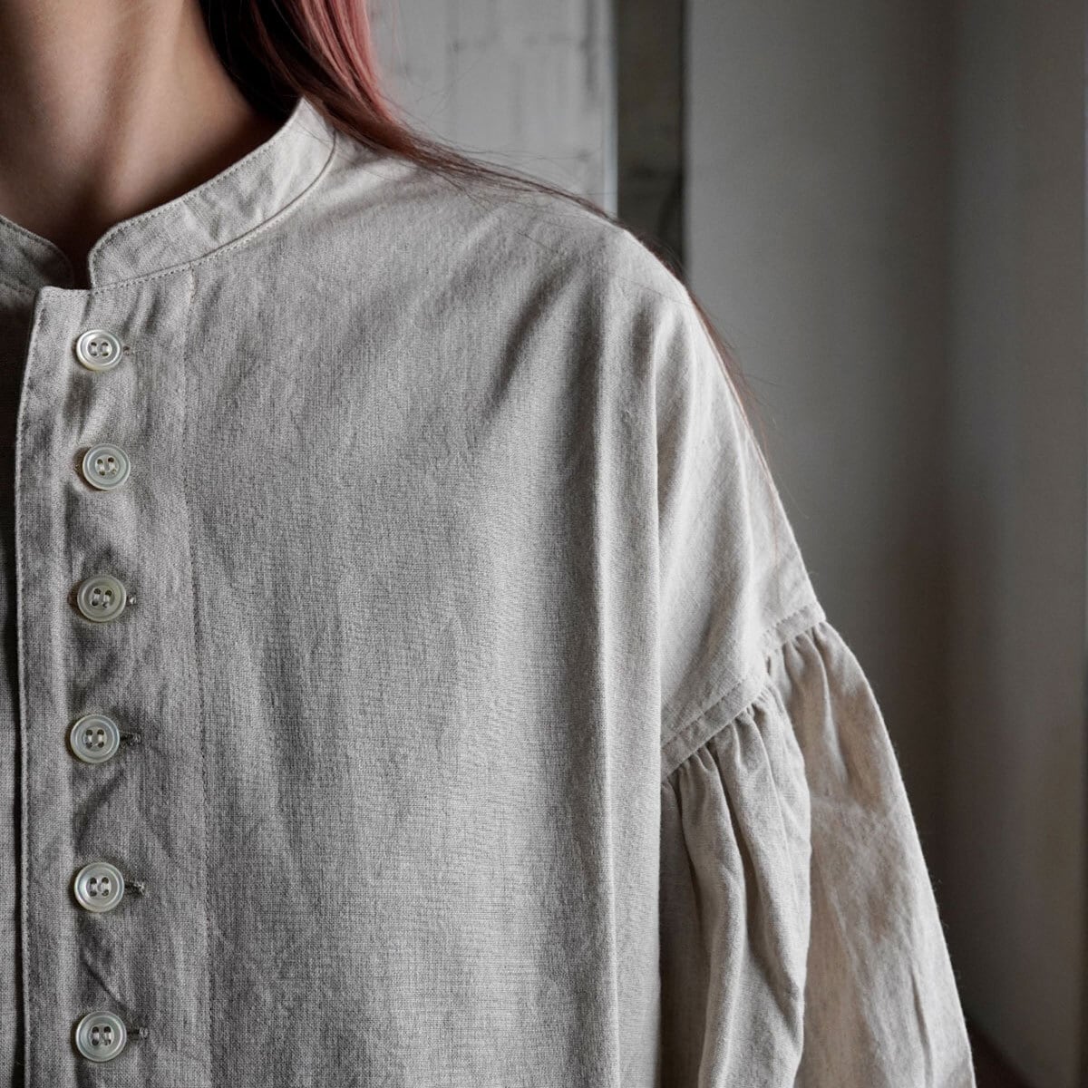 袖山のたっぷりのギャザーがひっそりと甘さをプラス。