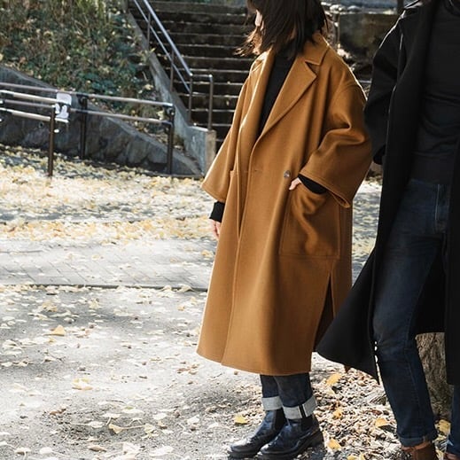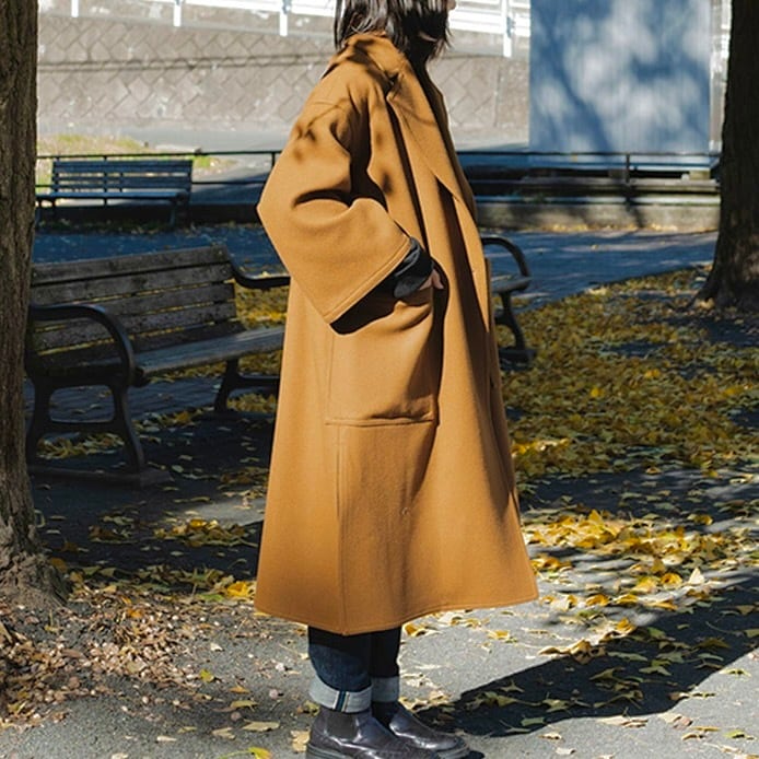 バサッと気軽に羽織れる、まるでガウンのようなコート。