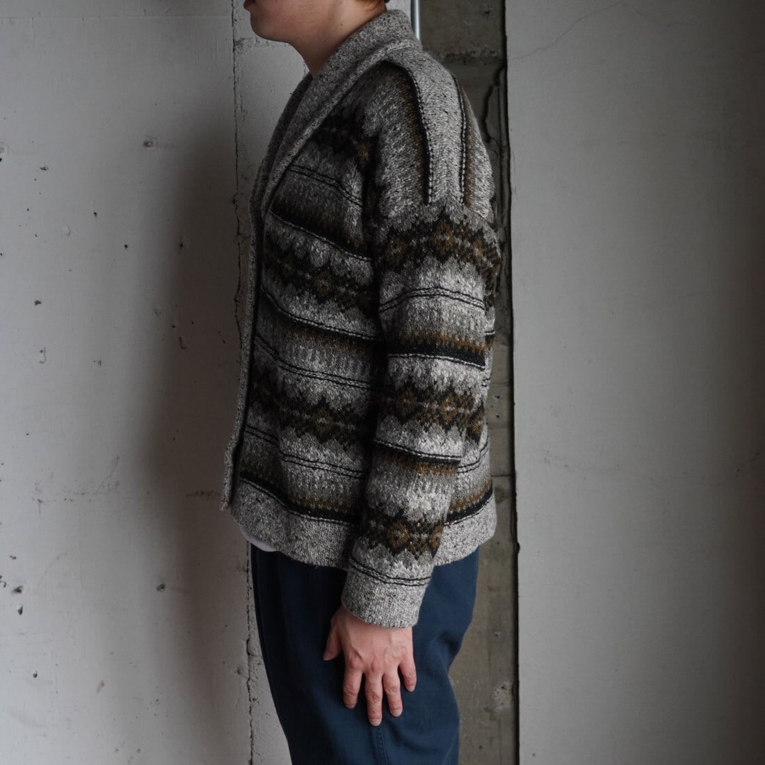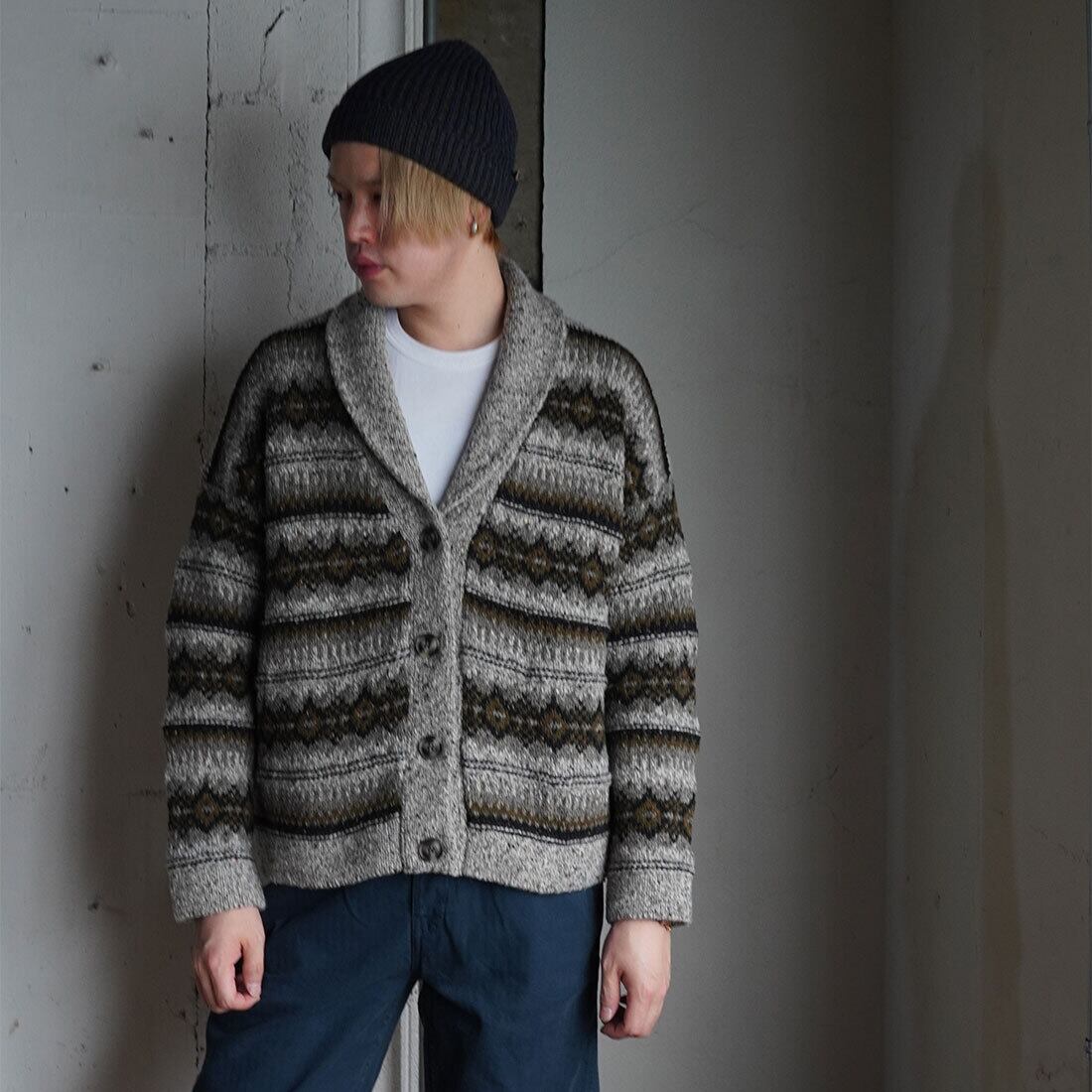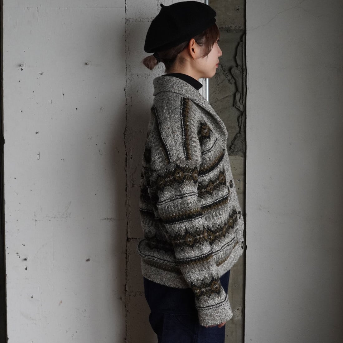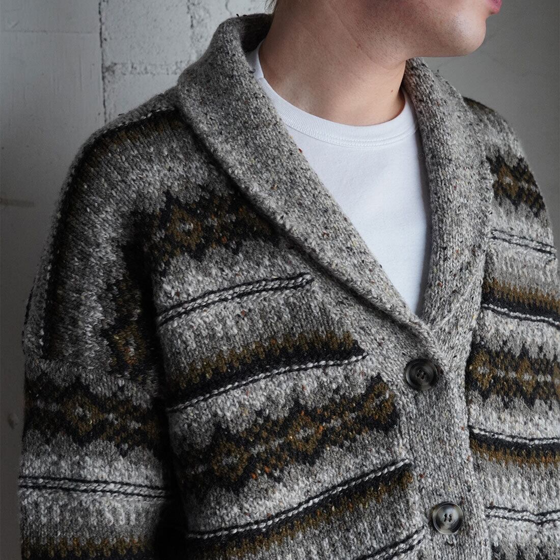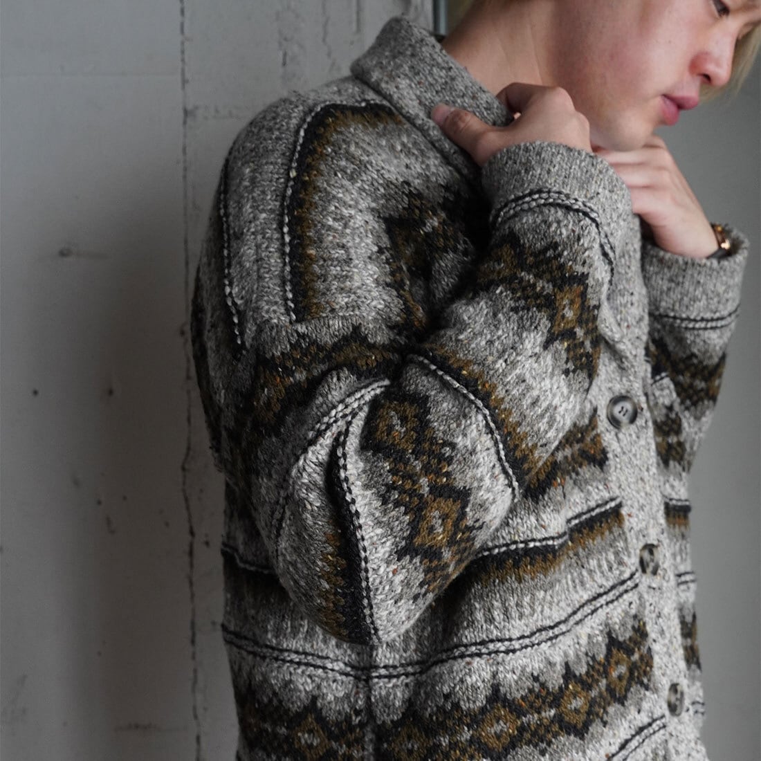 ざっくりとした網目と大きめの柄、そして開いた襟元が目を引くデザイン。